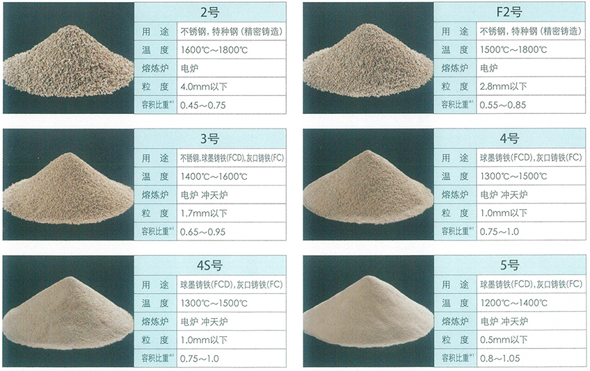 - 除渣材產品分類一覽表 以上數據僅為參考數值,不是保證數值。詳情相談請垂詢本公司 1、容積比重:測量碎石的比重時,由于巖石里面存在大量空隙,用水填充所有空隙比較困難,于是按照其成形的尺寸來計算體積,然后用重量除以體積的簡便辦法求得比重。 2、產品的顏色可能會因地層而異,但是質量絕對保證。 3、產品的制造方法、規格等如有變更,恕不提前通知。 特性: 使用石川硅石,可對「提高鑄造產品品質...